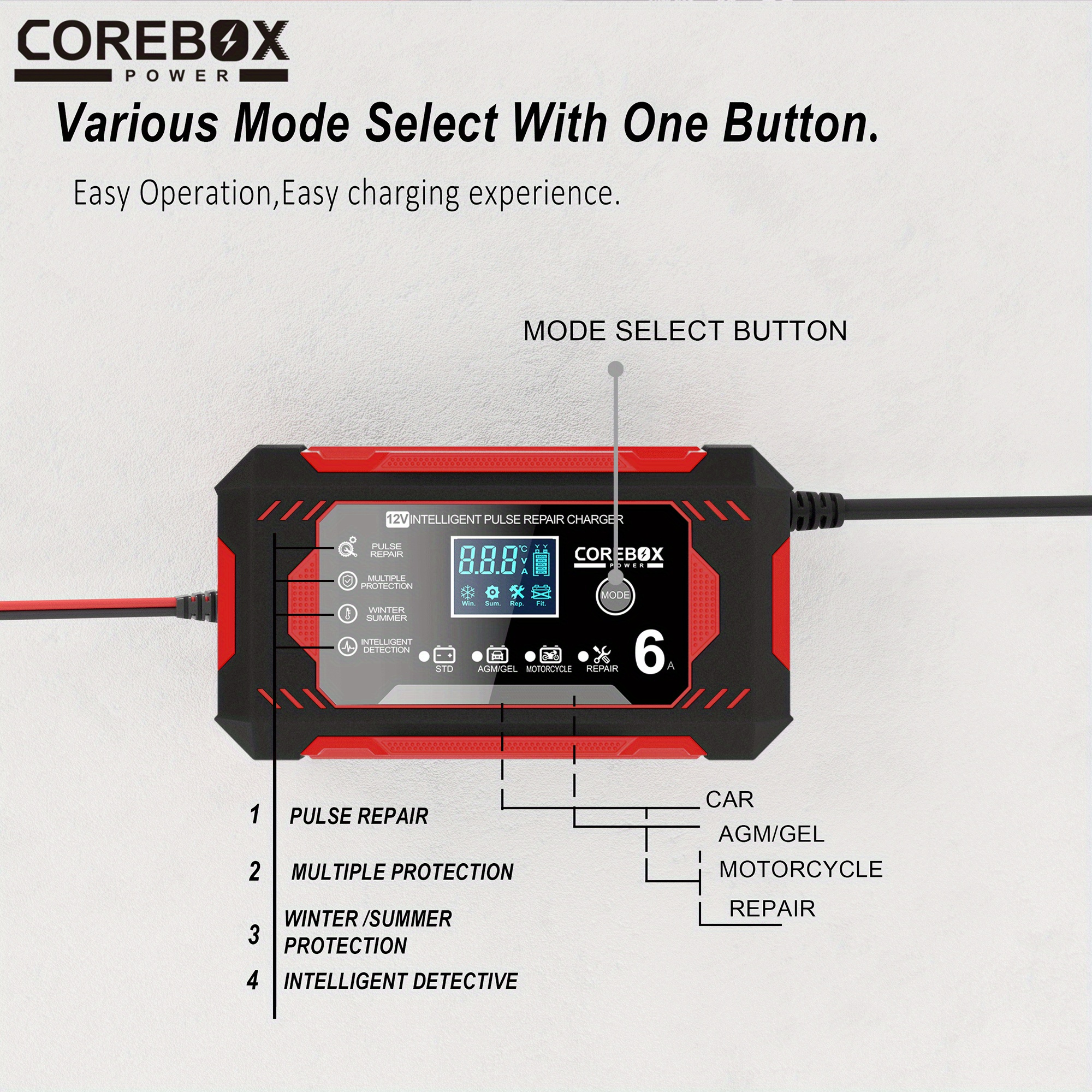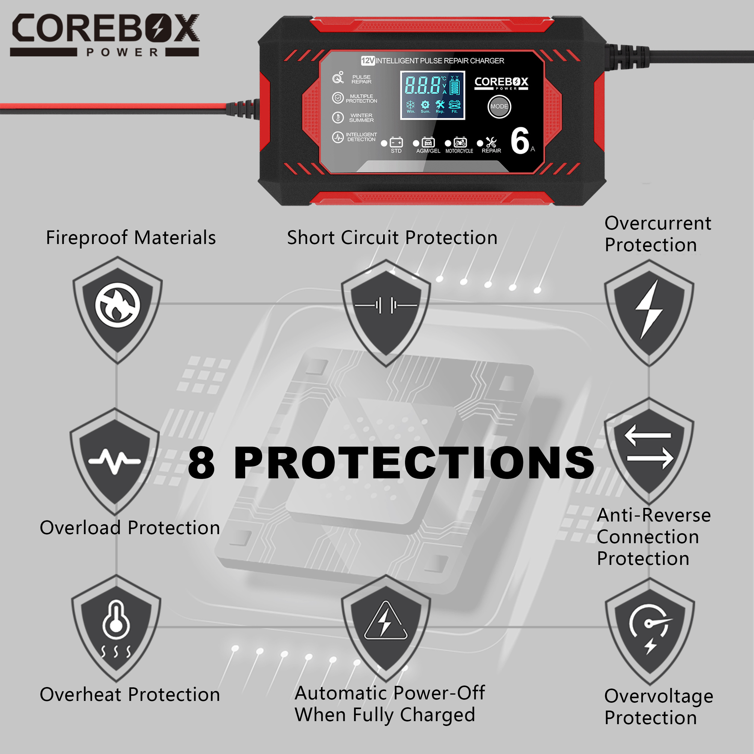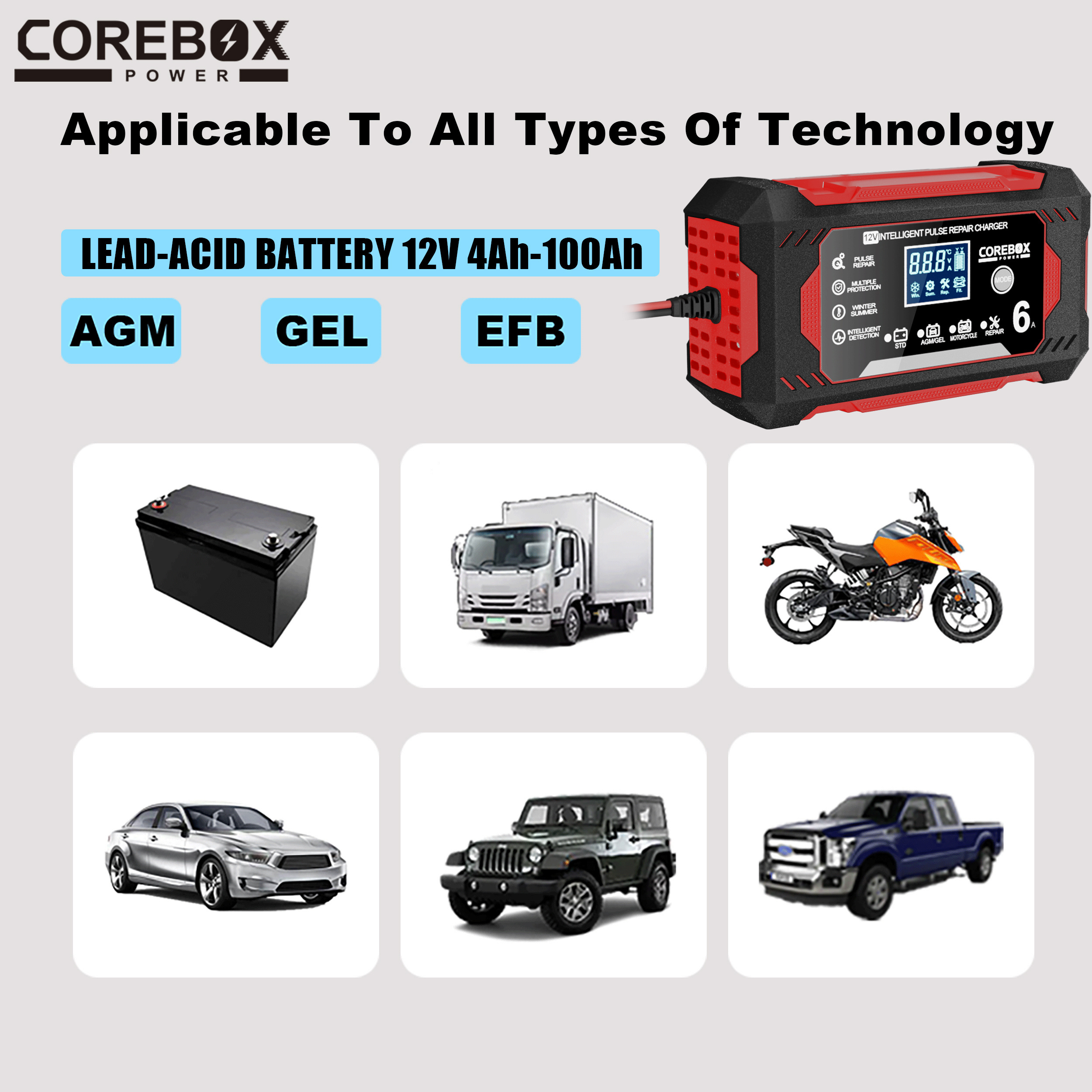 12V Smart Battery Charger & Maintainer – 6A Pulse Repair